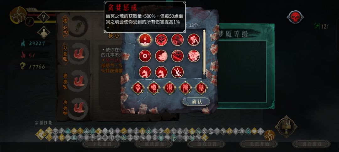 5.蓝色的梦魇秘籍右上方可以不选秘籍,让梦魇等级-1