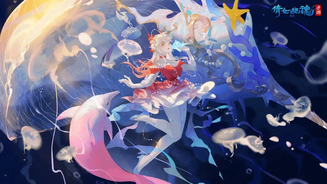 海螺谣,聆音响,少女化身海中精灵,与海豚嬉戏,同水母共舞,细浪缱绻,吹奏清歌乐章,梦幻翩然。