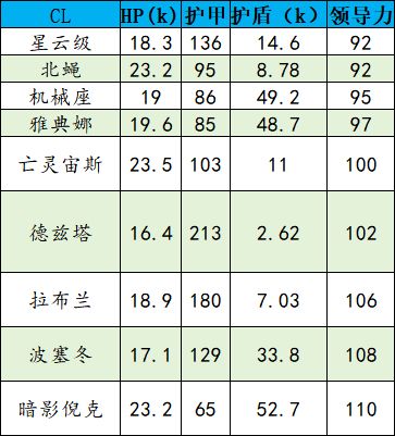 各巡洋舰基础属性值对比