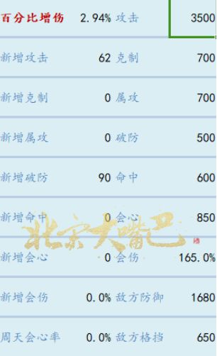 ※上面这些数据在模型中基本确定,下面的数据根据每个人属性不同会有浮动,我们就以普通面板,3500攻击,700克制,700属性攻,500破防,600命中,800会心的数据帮大家带入宴清和老白的模型进行计算。