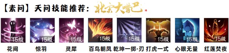 推荐缘由:看到很多宝宝们在评论区留言有说素问就业难的问题,表示素问加点只能是主情缘副结义。所以在进行了测试以及实战检验后,来为素问的输出【天问】证明,只要合理搭配,天问在内城同样能打出很高的输出,不比输出职业差。