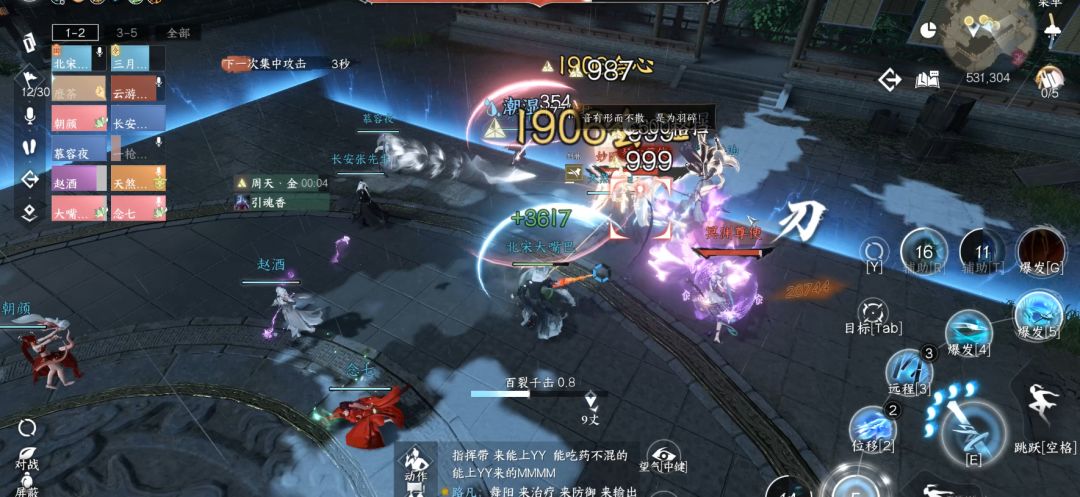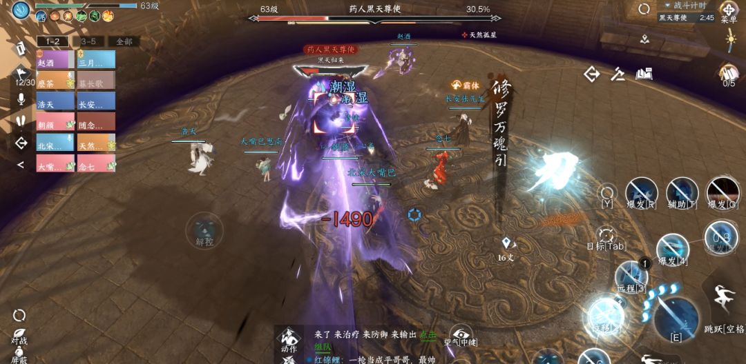2)修罗万魂引:扇形范围吸附效果,使用解控脱离站在BOSS背后输出。