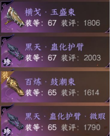 二)装备提升:看运气舞阳城掉落,头/护腕/手套可被替换为横戈套,最好能凑2件套装属性(我一个也没掉!),护手和衣服可被替换为独珍装备。
