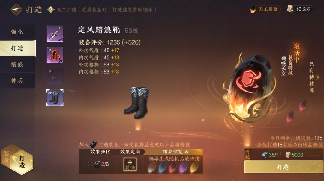 五)特技打造:鞋子开启特技打造,幸运项链+福运柔则+知天命+卜算天机+大相国寺上香拉满幸运,虽然我依旧没洗出紫色以上,都是命。