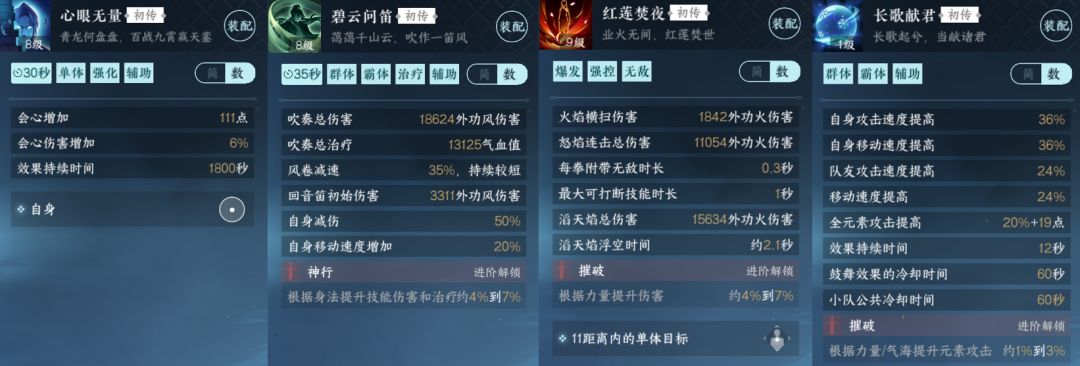 治疗职业:锦弦生莲/碧云问笛+心眼无量(给别人上)+长歌献君(增伤)