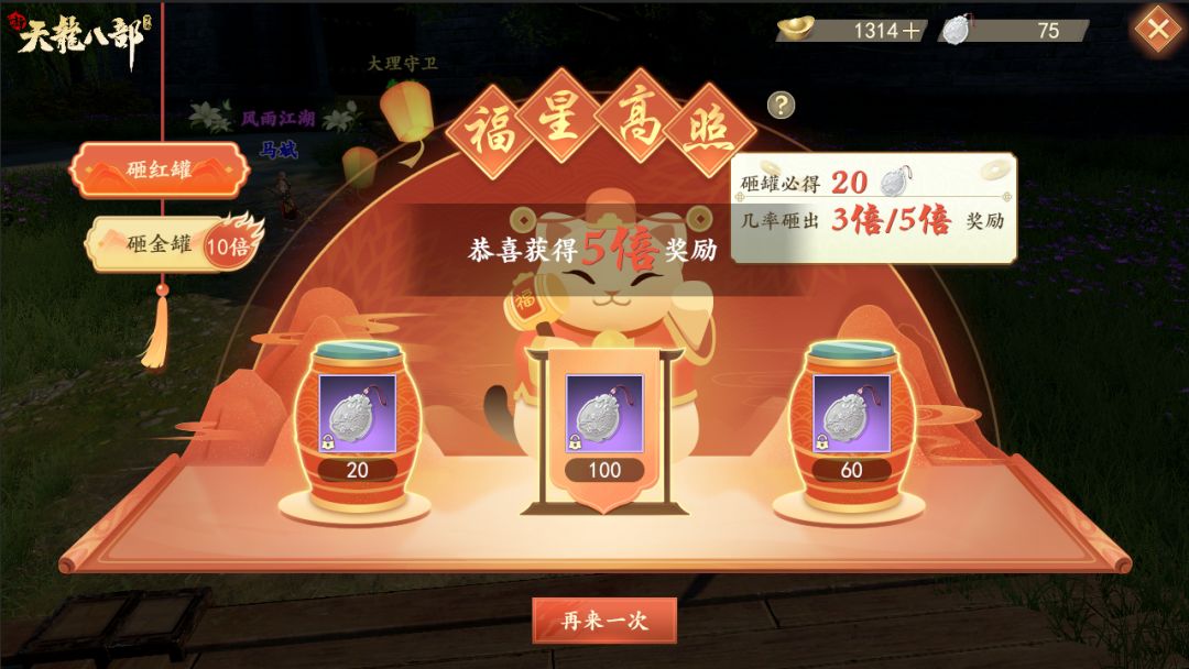 活动开启期间,满足条件的少侠可通过活动界面参与福星高照活动,获取“梅花令”奖励。