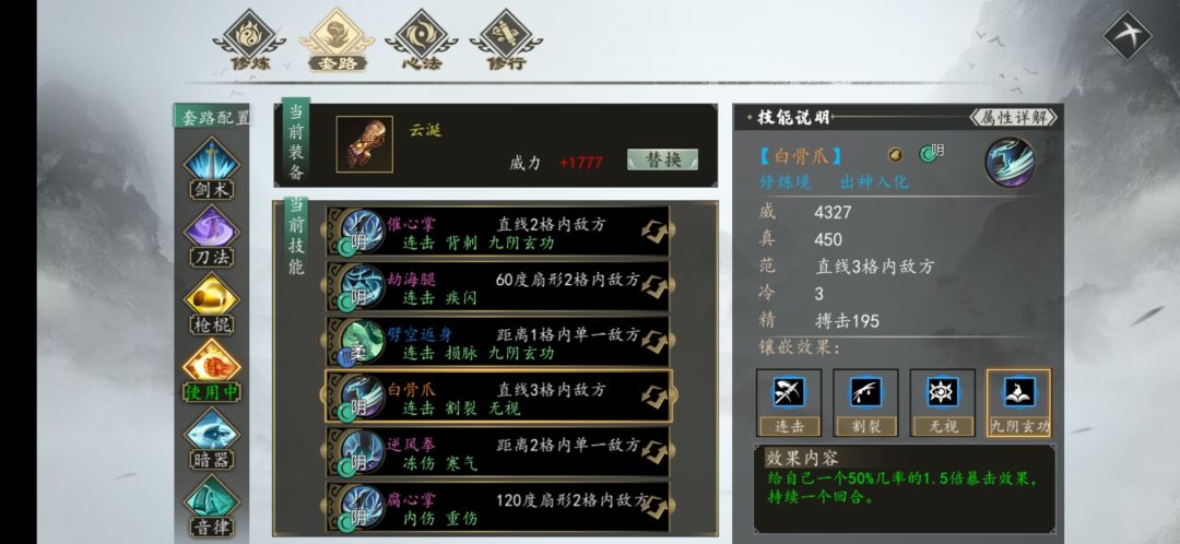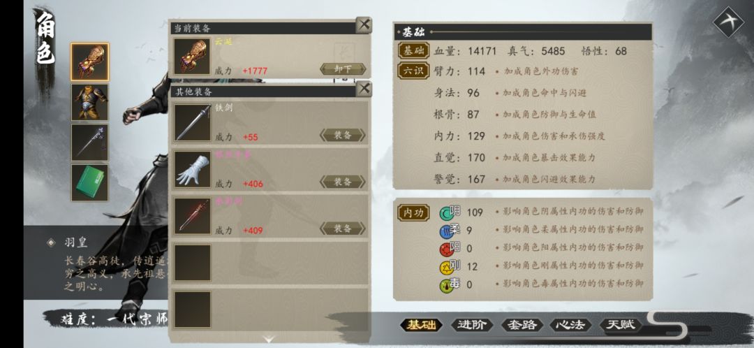 前天更新出的一代宗师难度,没办法只能从新玩一个阴拳,一直没玩过阴拳,选的宗师难度,等到玩的时候,哪有什么难度,这游戏的总体就是,核心武功装备太容易获得,所谓的江湖江湖是一步步从虾米成为大侠,而不是转身一变就成为横扫江湖的大神,前期玩的阳还比较有点难度,玩的阴简直……从拿到九阴到…主要是九阴也太容易获得了吧,而且大佛那里还有一本三绝,这就可以说出身就学会了绝世武功,策划大大,虽然你们这样的想法也许是考虑到萌新,但是我们这些玩了N久的老江湖玩起来就没意思的啊,希望后期的改进能想想老玩家的感觉,而不是买了之后放这游戏来吃灰。