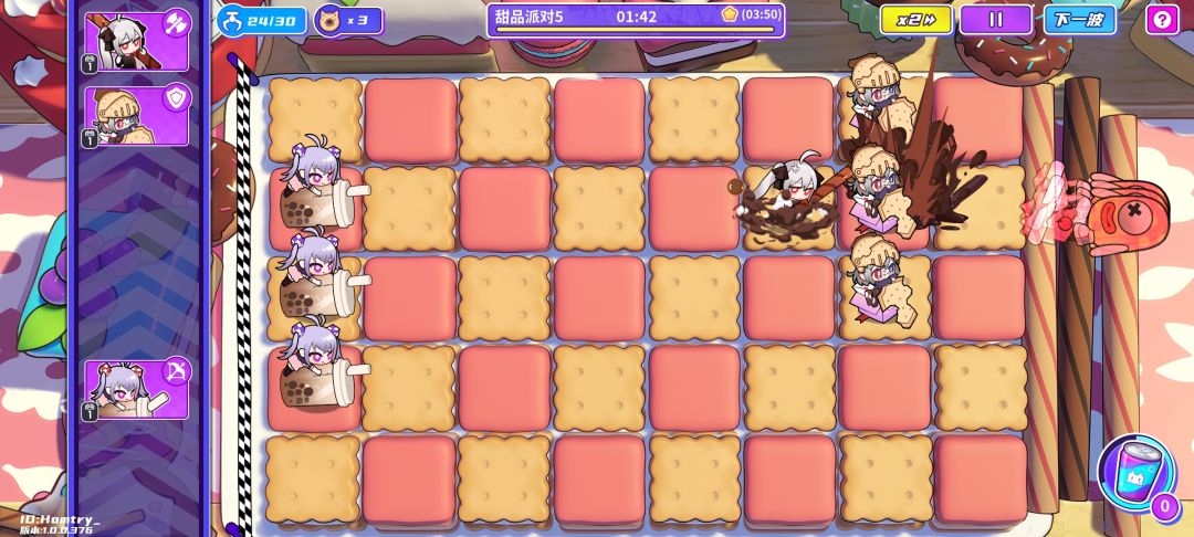 简单5倒是有一个速通技巧,尽量点击右上角的下一波,喂能量饮料给饼干骑士,用卷卷战士一波带走。时间大概1分半左右。