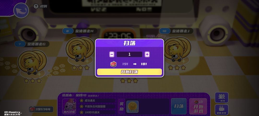 紧接着我们狂买体力,扫荡金币副本10到班长(玩家)等级6级。