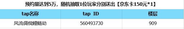 获奖的小伙伴请加入(官方QQ群:835543314)联系群管理(789:870195148)核对TapID信息进行领奖~