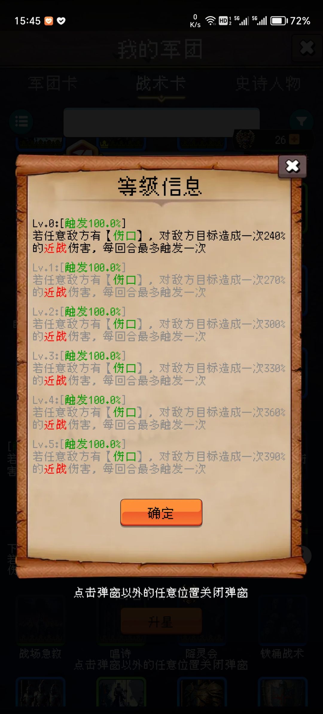 最好准备好任意五星蓝色军团卡三张张或四星以上橙色军团卡三张。我准备的是一个五星手术医生,一个五星轻甲骑兵,再任意一个移速低于轻甲骑兵的军团(可以再携带横槊赋诗增加全体友军穿透、卸甲战旗敌方全体减防御),骑兵有神卡胡狼围攻可以全体骑兵无视格挡。