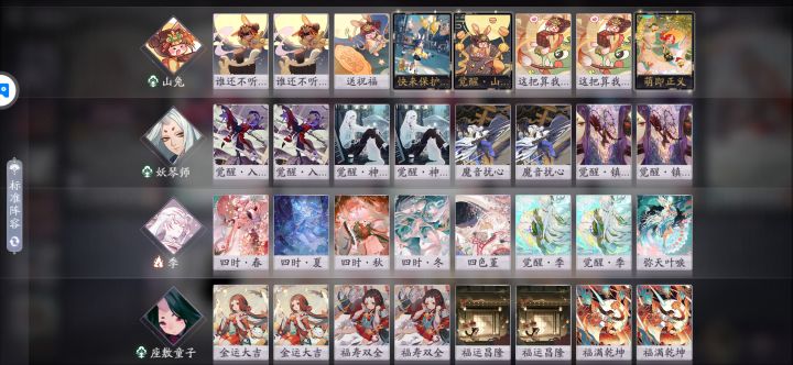 带牌方面座敷可以把一张过牌形态换回血形态,妖琴入阵歌可随意替换(有条件可带一张ssR),季两张觉醒和幻境必带(有条件可把形态换ssR),山免萌正可换送祝福。