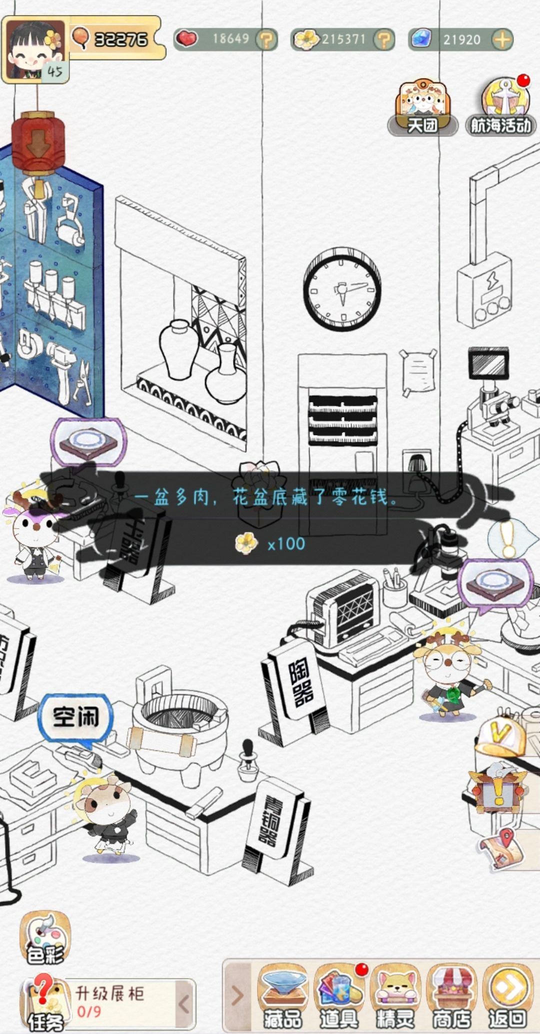 研究所的多肉花盆每天可以反复点击,emmm不知道可以点击多少次,应该是100次,合计起来大概有10w🌸,点到弹出原来有花朵,不知道被谁拿走了。