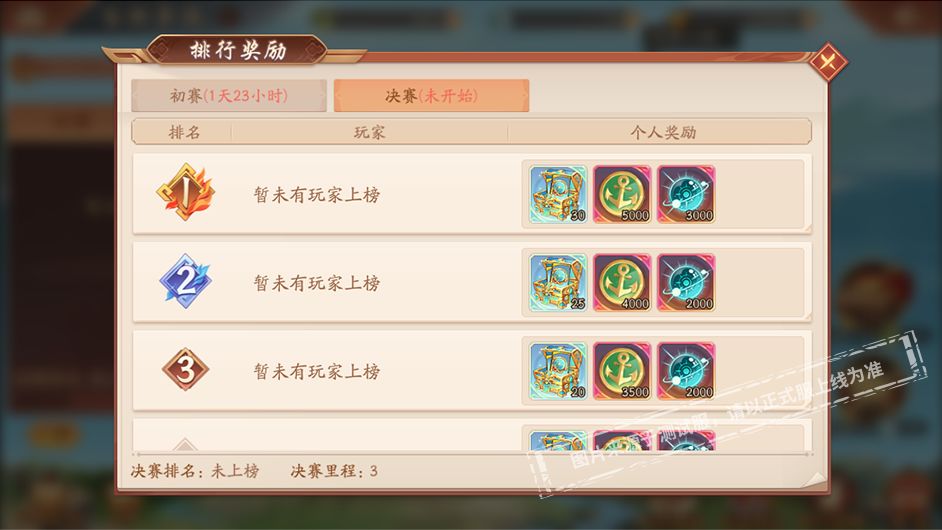 排行榜分为初赛排行和决赛排行,初赛排行在第2天24点结束,决赛排行在第3天24点结束,有意争夺排名奖励的少年请注意活动时间。