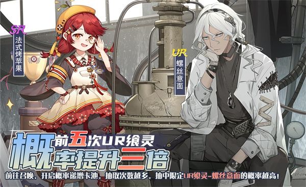 活动描述:活动期间,开启概率递增卡池,UR飨灵-螺丝意面和SR飨灵-法式烤苹果限时加入卡池,御侍大人使用专属道具进行召唤,该卡池UR飨灵抽取概率大幅度提升,并且随着抽取次数的增多,UR飨灵-螺丝意面的抽取概率也会随之提升。