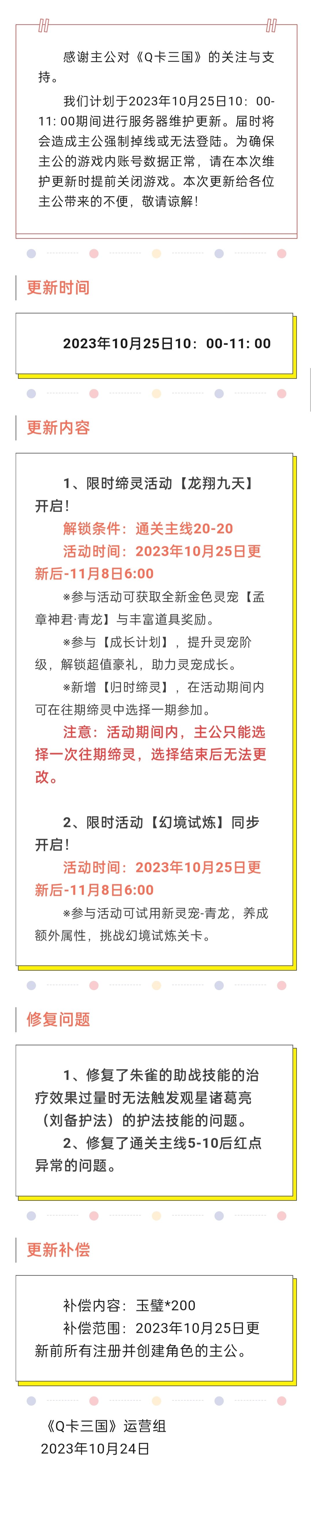 《Q卡三国》10月25日更新公告