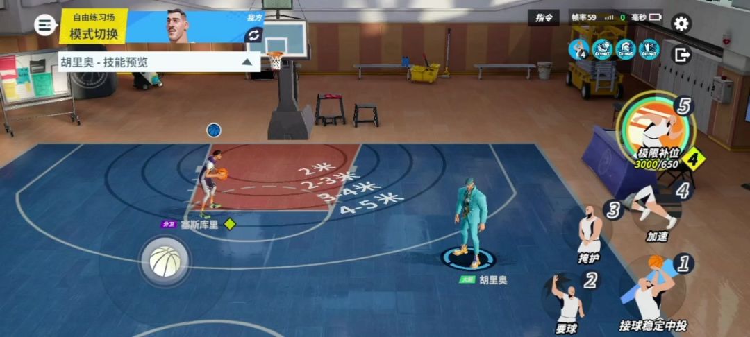胡里奥:其实没啥好讲的,主打一个防守,很吃预判和反应,有操作就是t0,没操作就是t1.5,进攻主打一个偷,比如空位扔俩接球投篮,或者趁对面内线空虚扣个一两个,还有一个偷分技巧是开球的时候你不是发球的那个,直接直线瞬移扣篮就行,偷鸡常态。然后由于胡里奥篮板数值不高,所以他是比较吃补扣的竞争值加成,不建议指望胡里奥摘板给你再打进攻,他不太能抢的过别人。顺带提一句,开了大的胡里奥有0.5帽距加成,目前全游戏最远盖帽距离(和开大的字母差不多甚至更甚),一般就是加速-开大-跳。不过建议要多赞几个大或者确实有把握再交出来,不然很容易被人骗。阵容上也是比较百搭,毕竟工具人,哪里需要往哪插。