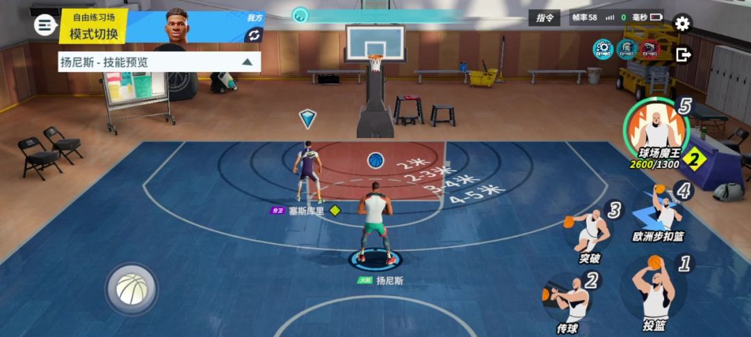 关于这个有一二点并且能DS的技能有一个很有趣的玩法,就是选字母约老师库里,字母没大的时候就用库里和约老师配合打挡拆,主攻手用约老师或者库里都可以,可以约老师中距离背打投篮或者库里三分。当字母有大后,对面一般都会两个人在篮下帽一二点,对面也要抽出来一个防库里,那这时候约老师就有两个选择,三分线和篮下,这里主要讲篮下的(比较稳),如果对面是韩旭和有双手盖帽的内线就骗豆和骗双手盖帽,等他们把技能交完了就是进攻的开始,字母折叠传球给约老师上篮,这个没有双手盖帽和特殊盖帽技能是反应不过来的。