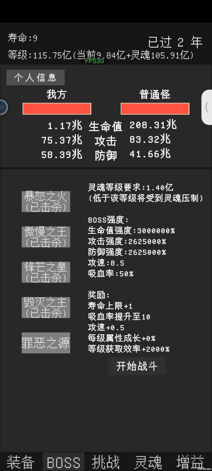 第二个,灵魂等级,举个例子,你前期一级就死了,你的灵魂等级1级,然后下次你还能有个真实等级1级,这样你的实际等级是二者相加,你就有2级的属性了。但是因为越级属性提升逐渐离谱,所以这个也是后面去没啥用的。