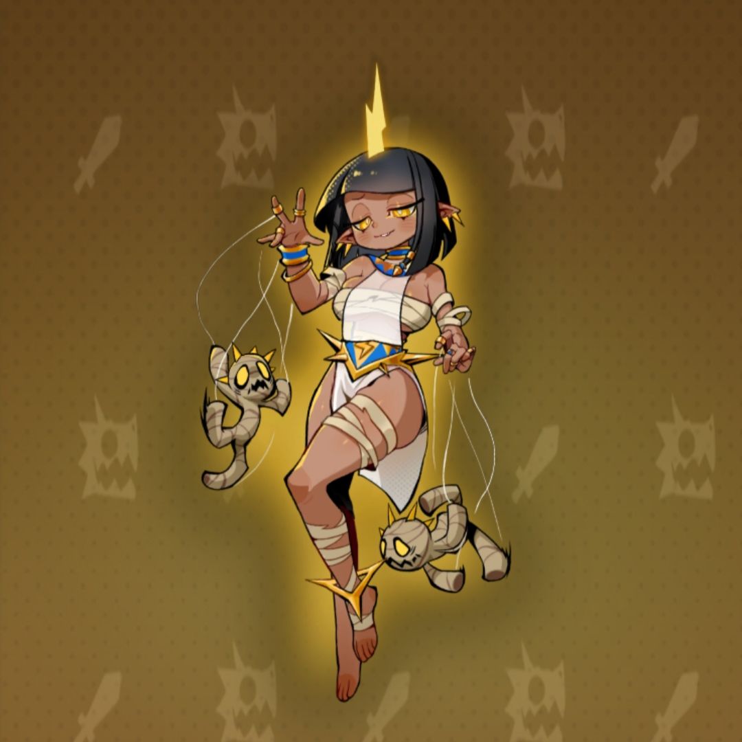 克莉奥人形态:人物形象中规中矩。看肤色和服饰,典型的沙漠贵族。身缠陈旧绷带,佩戴黄金饰品,手提牵线木偶,也是目前唯一自带金色光环的人物角色,有点神秘的感觉。
