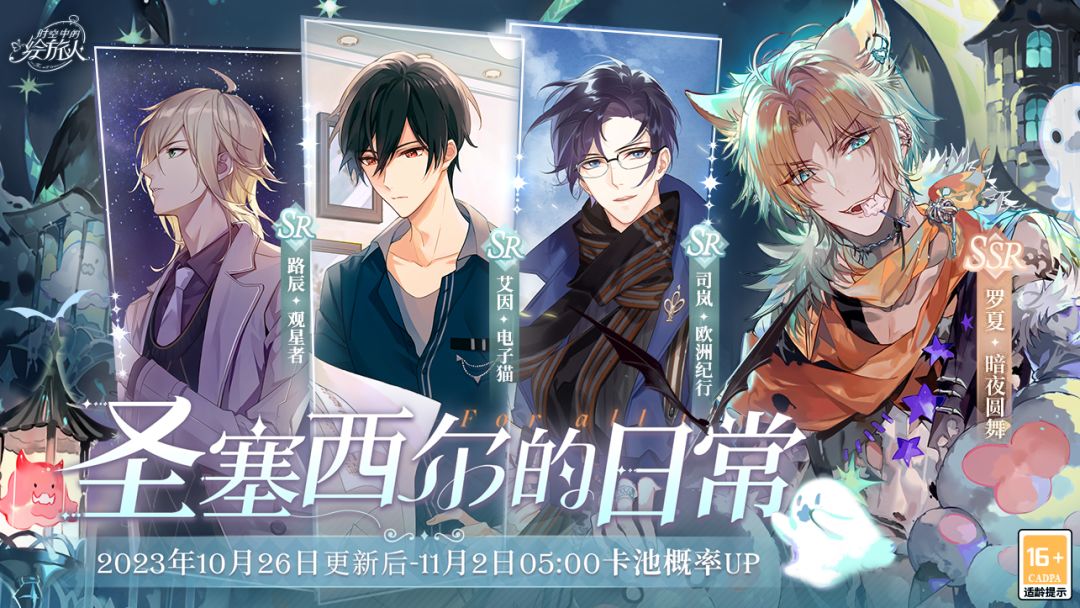 ► 卡池说明:罗夏SSR[暗夜圆舞]、路辰SR[观星者]、艾因SR[电子猫]、司岚SR[欧洲纪行],在[画廊]中概率UP,占对应品级50%,相同品级均分概率。