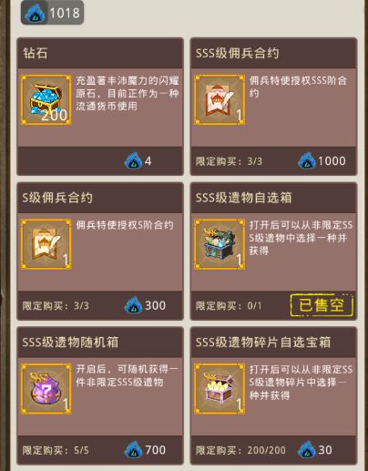 遗物礼包共3个,购买了前置礼包后可以触发后续礼包。