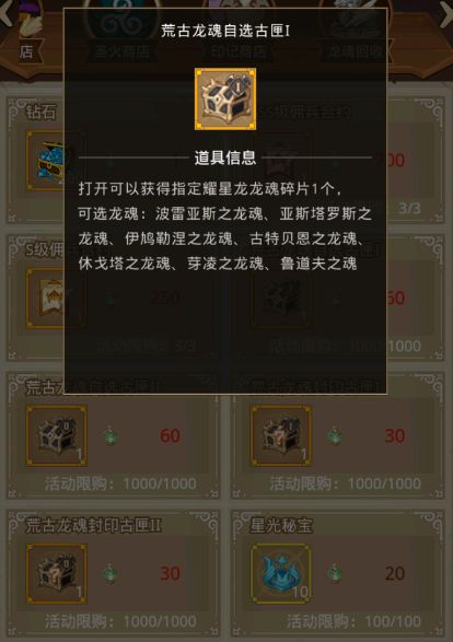 活动期间,勇者可以通过花费钻石或者龙晶购买攻击道具对暗影军团进行攻击,每次攻击后可以随机获得一定数量的暗影余烬,暗影余烬可以在活动商店中兑换SSS遗物、遗物碎片、魔方等各类道具。