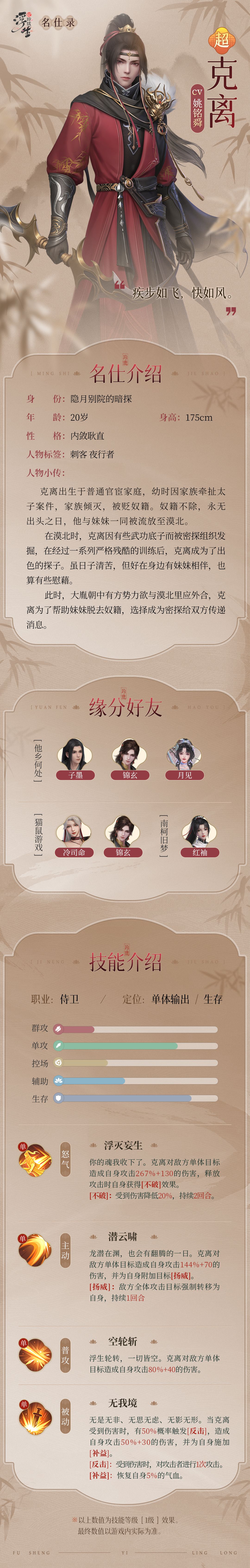 浮生名仕录丨变强,守护自己想要守护的人。「克离」档案公开