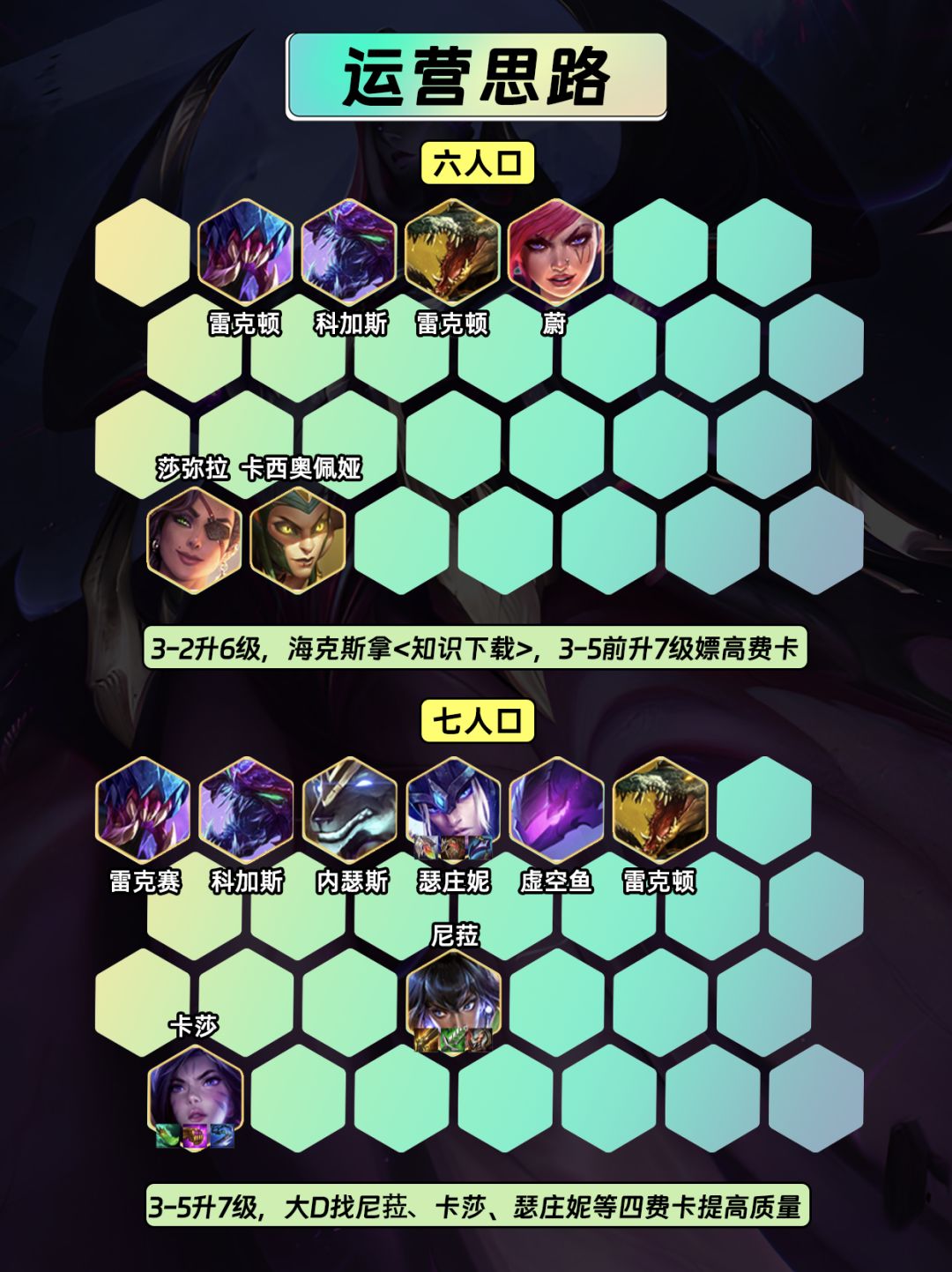 6⃣3-2升6级,海克斯拿<知识下载>,在3-5之前升7级提高4费卡概率