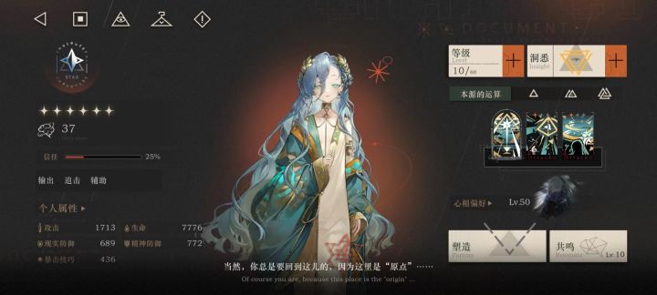总而言之由于37的本源创伤只吃攻击面板和爆伤,在队友或者环境能够提供高额增伤buff的情况下,37本源创伤提供的收益将如不纯精神伤害,所以在配队上一般都是37+另一位输出的配置