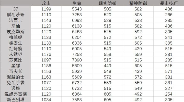 37目前拥有全游最高的攻击面板,由于本源创伤只受技能倍率以及攻击面板的影响,而37的技能倍率中有一部分被本源创伤占去,使得37在吃拐方面的收益低于常规角色,相对应通过提升攻击面板来补偿,同时高攻击在百分比加攻的buff下也能获得更好的收益