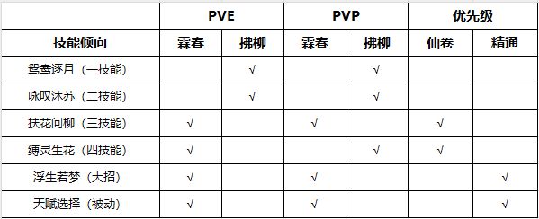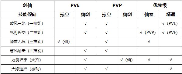 - 技能倾向因为PVE和PVP的需求不同所以分两套