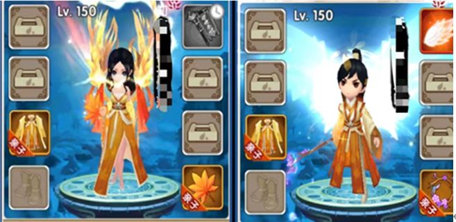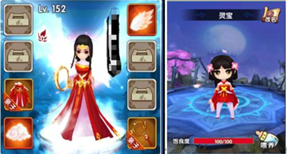 主人服装:月尊、妖神、剑尊。各职业服装各有特色。月尊高条,穿衣服优雅美丽。妖神小巧可爱,萌萌的萝莉。剑尊帅气。不过同款亲子装灵宝衣服一样,跟职业没关。