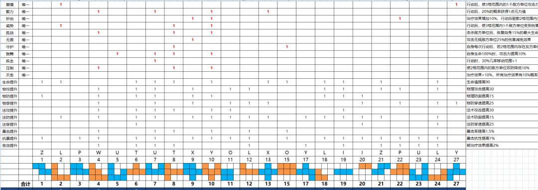 数据来自于排行榜天使展示参赛者的金零件,目前已经统计了130多个,还未完成,初步看起来零件属性,真XXOO的坑啊,个人感觉规律是金零件属性提升,所有金零件都会出现,而唯一属性则只会在5个及5个以上格子的零件随机出现,如下图: