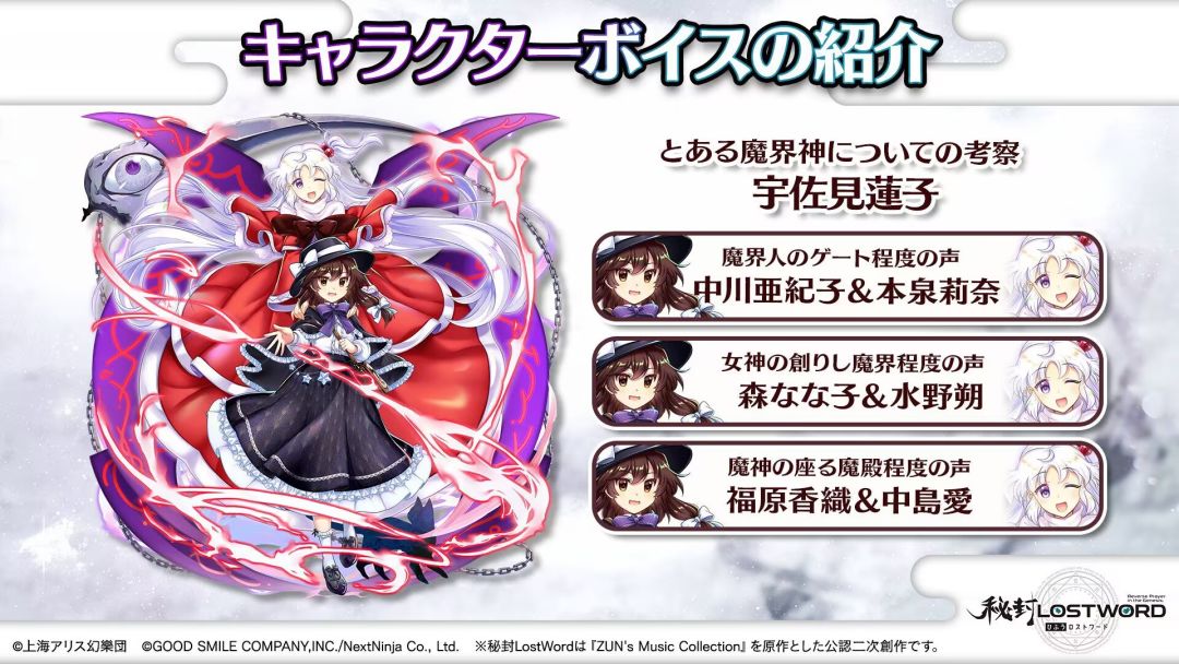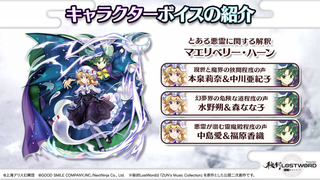 这俩的cv也很有意思,是一套反过来的,莲子的cv同样也是魅魔的cv,梅丽的cv同样也是神绮的cv