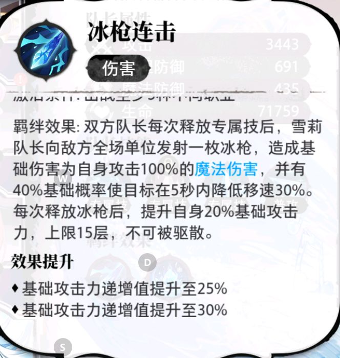 每次释放提升 30%"基础攻击" ,实战提升伤害约为首次伤害的 25% ,