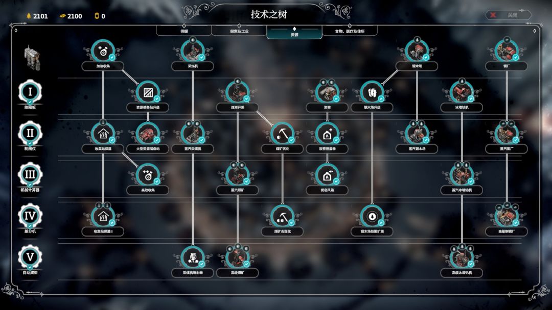 木材作为主要建材是前期首要获取的资源,有两个分支可选,锯木厂和冰墙钻机。