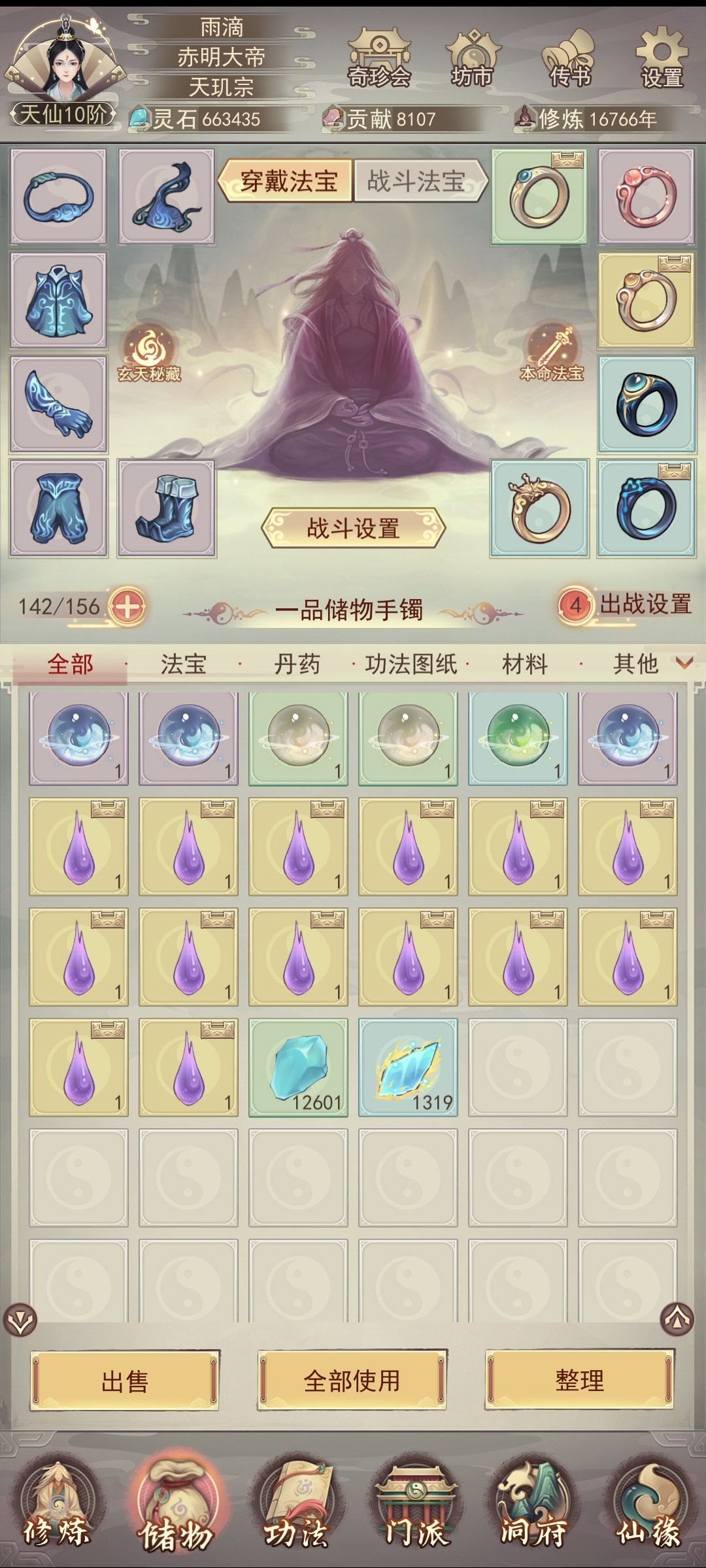 上附个人背包图,宗门贡献换的须弥练完,156格。
