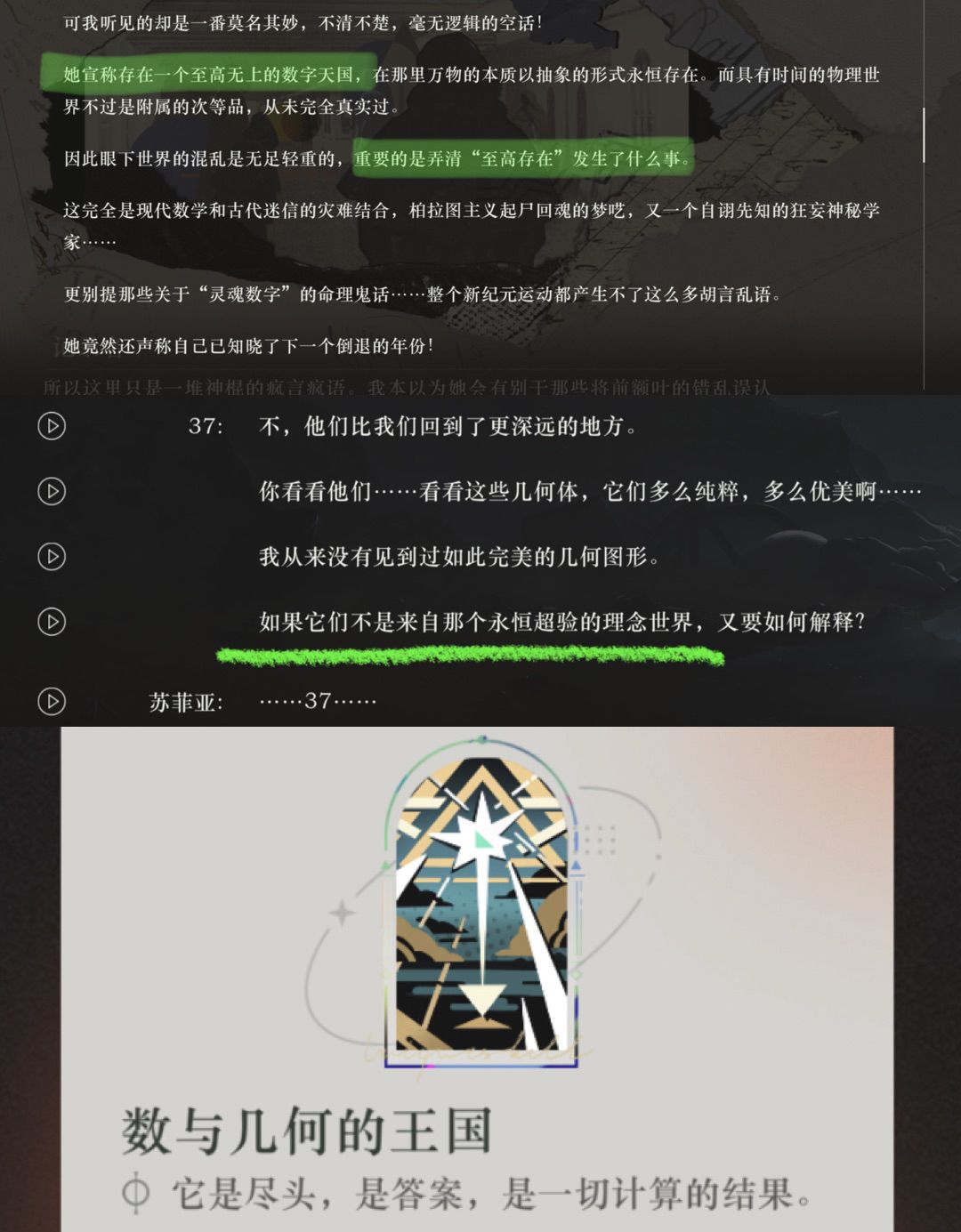 3、77坚信存在数字天国,37也一样,而剧情中37也是唯一强调这一理念的人,即使是苏菲亚在37面前为父母化作几何体而悲伤的时候。这也是她大招的名字(图4)