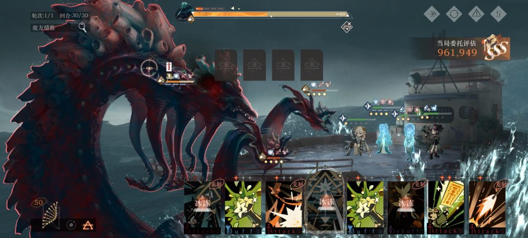 1.怪的伤害和攻击频率并不高,但是冰冻的伤害非常高。所以扛到30回合光靠奶是很难的需要的是解冰冻这个状态异常的角色,所以牙仙是高分的必需品因为她大招解控。
