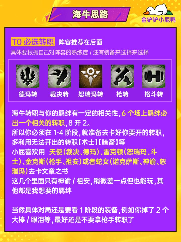 海牛转职与你的羁绊有一定的相关性,6个场上羁绊必出一个相关的转职,8开2。