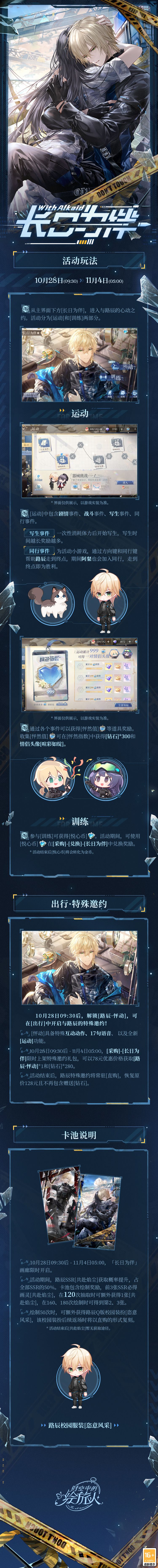 ★开启时间:10月28日09:30 - 11月4日05:00,从主界面下方[长日为伴]开启与路辰的锻炼体验。