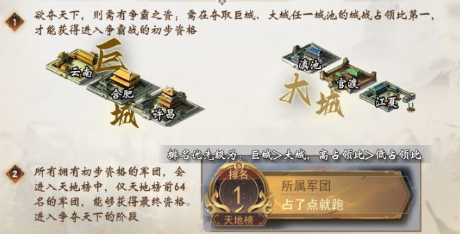 在这个模式中,大家会以军团为单位,跨服形式争夺据点,入驻时间计算得分,谁能成为最终的胜者?