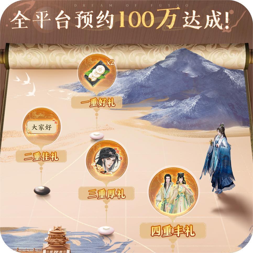 据《盛都不让报》统计,《扶摇一梦》全平台预约量突破100万啦!为感谢如此多首席大人的目盼心思,百万预约里程碑奖励正式解锁!凡是2023年12月17日0点前进入游戏并创角的首席大人,都将如约收到玄凤鸟送出的预约里程碑大礼包:体力包子*2、气泡框:秋望南山、头像框:秋望南山、时装:美人幕。