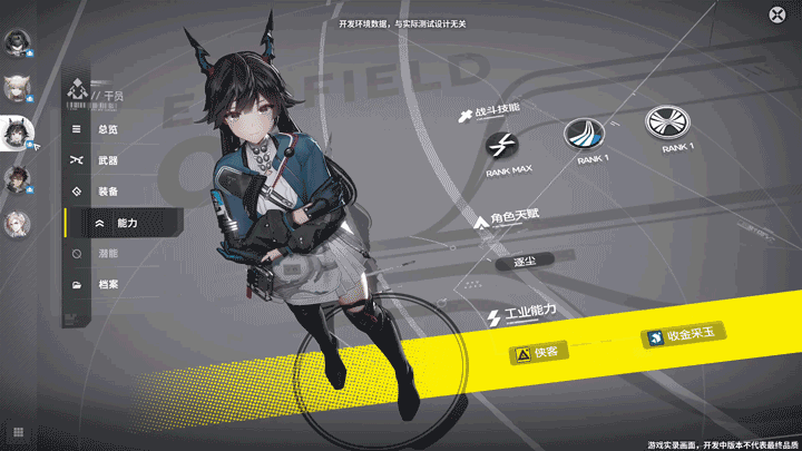 每个角色除了战斗技能和天赋之外,还有不同的“工业能力”,虽然暂时看不到具体的效果描述,但推测应该是类似探索资源或者加快生产之类的效果。