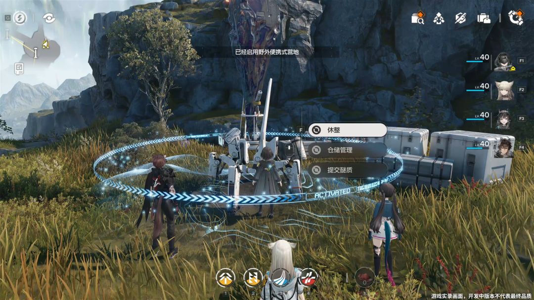 实机视频里也展示了一些探索的玩法,最基础的应该就是解锁“野外便携式营地”。这个营地看起来是类似传送点的存在。在便携营地可以把背包里的物品快速转移到仓库,不像一般单机工厂建造游戏是只能手动运回基地里。
