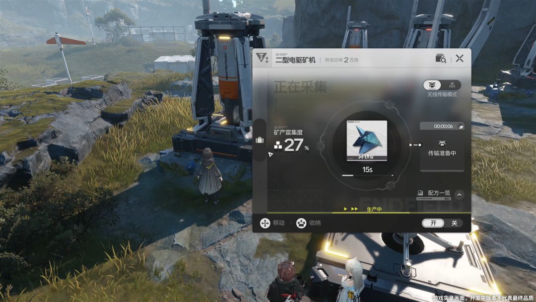采集出来的矿石需要运输到其他生产设备,而不是直接进入背包,如果矿点就在附近,可以采用传送带运输,而对于远距离的矿点,游戏里则有“无线运输模式”,应该是使用无人机运输远距离资源的功能。