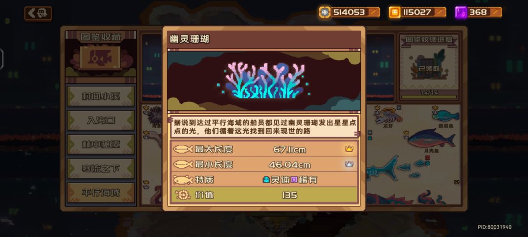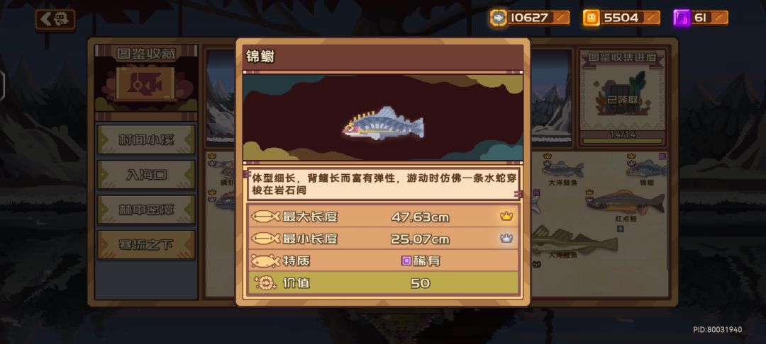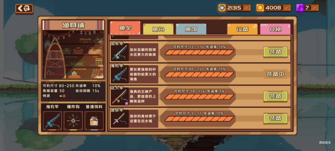 不同的鱼,身上的特质是不同。需要用对应特质的鱼竿/鱼钩/鱼饵,才有更高的可能性钓出想要的鱼。