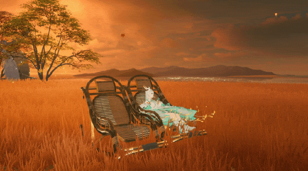 每天16-18点的半点,前往昆仑山即可偶遇阿乌,让阿乌带你光临傍晚的秘境。阿乌每次出现持续半小时。除了奇花、烟火之外,在夕阳场景还拥有独特的【孔明灯】特效物品,点击即可许愿放飞。