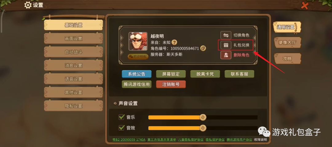 二、进入“设置”界面,点击“礼包兑换”,进入“口令码/CDKEY兑换”页面。